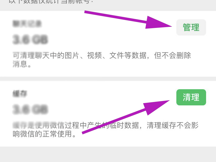 4、在存储空间中,就可以自行的清除微信的缓存数据。