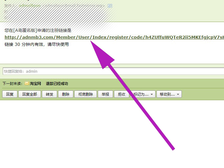 4、过一段时间后,a岛就会给你填写的邮箱发送邮件,收到邮件后点击里面的网页链接。