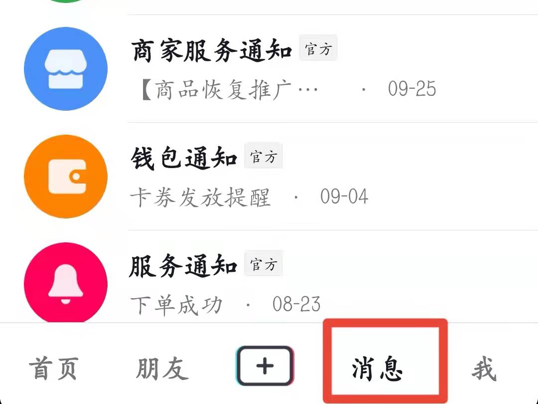 1、打开抖音APP,点击“消息”,进入消息通知界面。