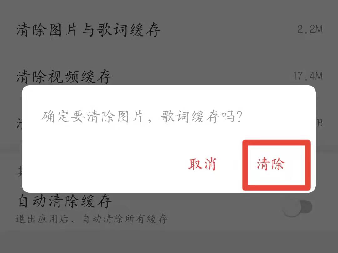 3、点击“清除图片与歌词缓存”-“清除”按钮即可将网易云音乐相册删除。