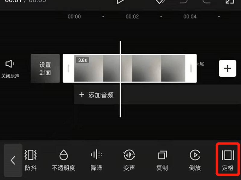 5、右滑操作栏找到“定格”并点击,即可让视频定格。