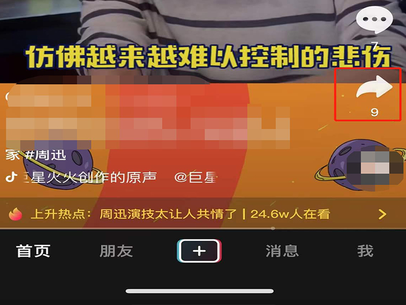 3、在刚转发的日常视频中,点击右下角的三点,即可打开工具栏。