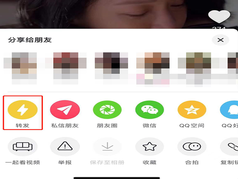 2、点击“转发”,即可将视频以日常的方式转发至个人主页中。