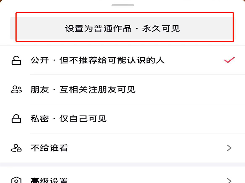 5、点击“设置为普通作品”,即可将日常视频转为转发。