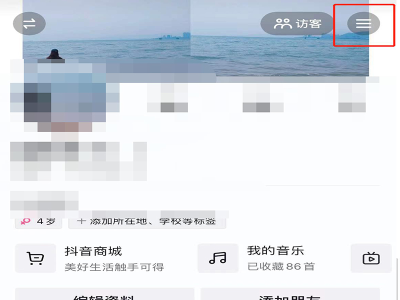 1、打开抖音app,在我的个人界面上,点击右上角的三横杠,即打开抖音工具栏。
