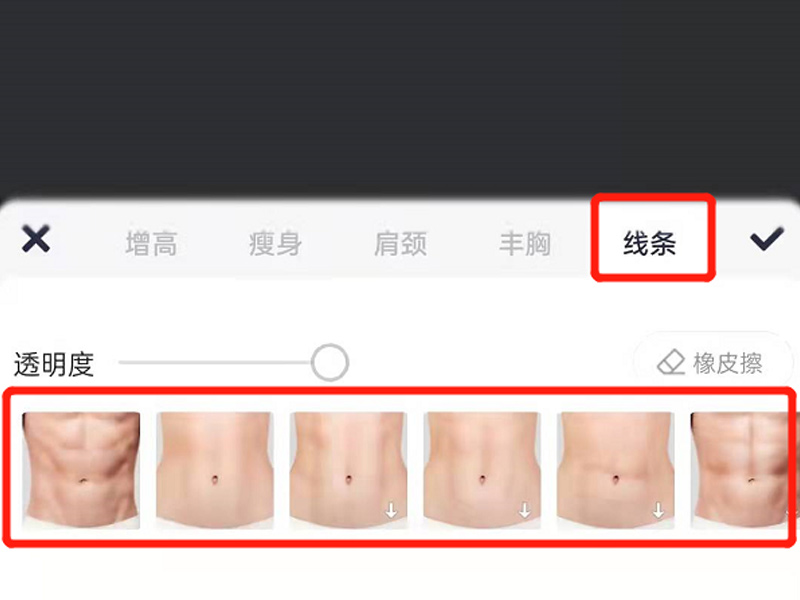 3、点击“线条”,在下方即可选择腹肌类型进行p图。