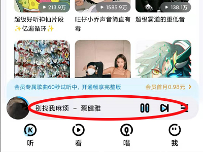 1、打开酷狗,并播放一首歌曲。