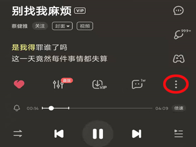 2、点击下方的播放条,进入歌曲播放界面,并点击右边的三个点。