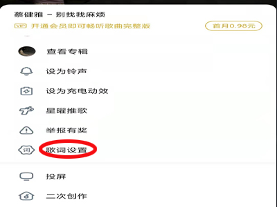 3、在弹出的词条中点击“歌词设置”。