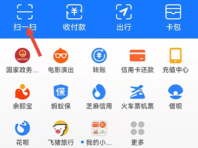1、打开支付宝界面,点击“扫一扫”,扫码付款。
