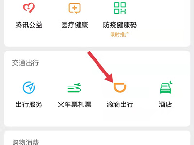 1、打开手机微信app,在支付界面中点击“滴滴出行”。