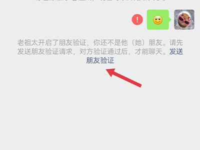3、点击系统提示消息中的“发送朋友验证”,等待对方同意后即可将对方添加为好友。