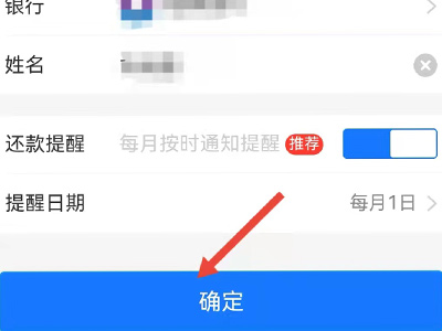 3、在页面中填写信用卡的卡号、姓名,点击确定即可绑卡成功。