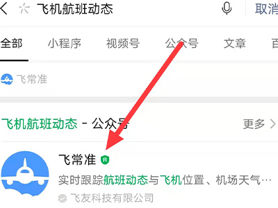 1、打开手机微信app,搜索并进入飞机航班动态公众号。