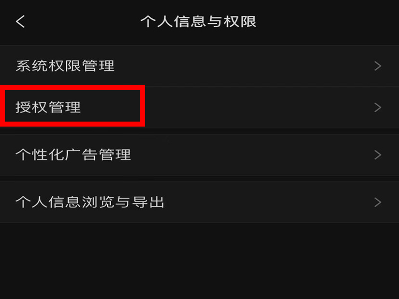 3、进入“个人信息与权限”界面后,再点击“授权管理”。