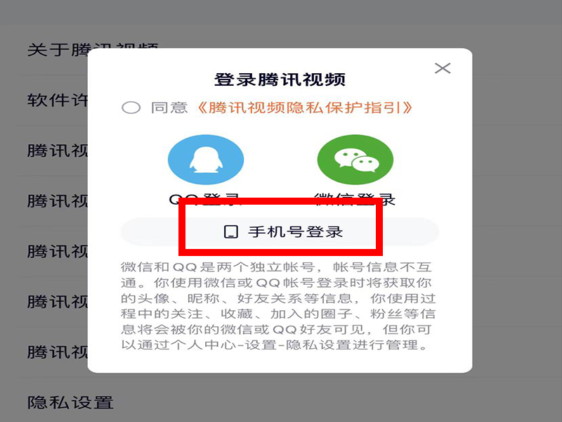 5、在登录腾讯视频的时候选择用手机号登录即可。