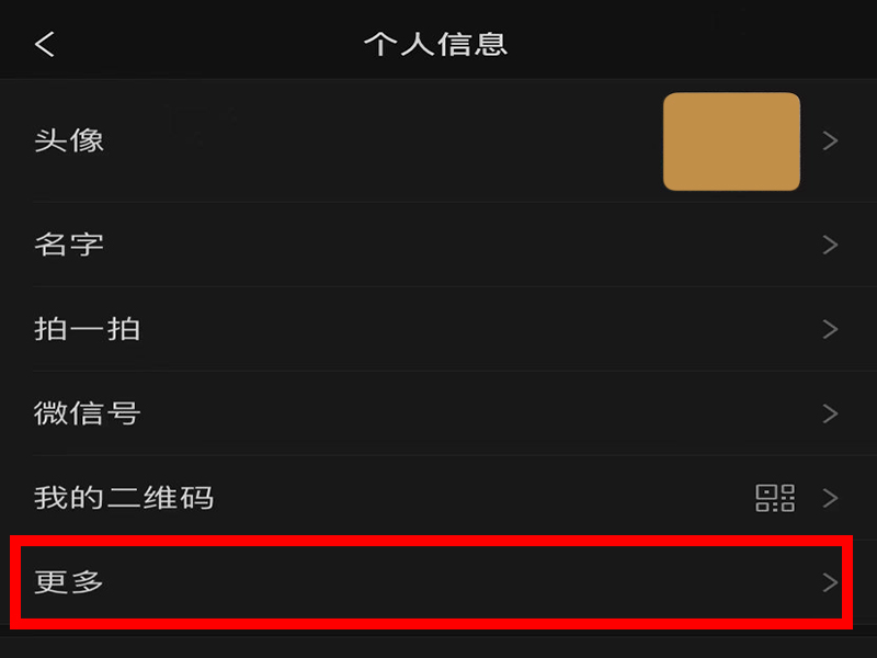 2、进入“个人信息”界面后,点击“更多”。
