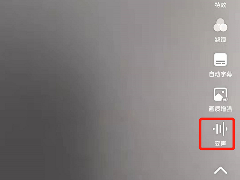 3、在视频编辑页面右边点击向下标志,找到并点击“变声”功能即可进行变声处理。