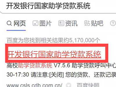 1、 打开浏览器,搜索“开发银行国家助学贷款系统”,点击进入。