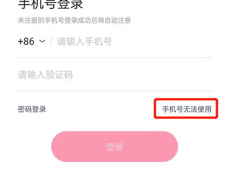 3、点击“手机号无法使用”。