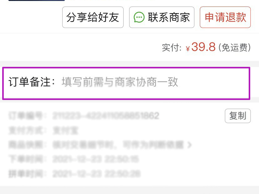 4、在订单页面中,找到“订单备注”选项,点击即可对该订单进行备注留言。