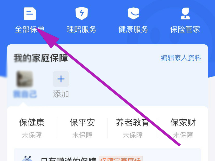 3、在“我的”页面中,找到左上角的“全部保单”图标,然后点击进入。