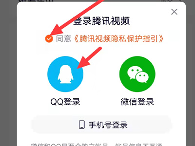 3、选择qq、微信或者手机号登录,并点击同意。