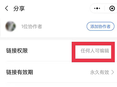 3、在文档的“链接权限”中选中“任何人可编辑”。