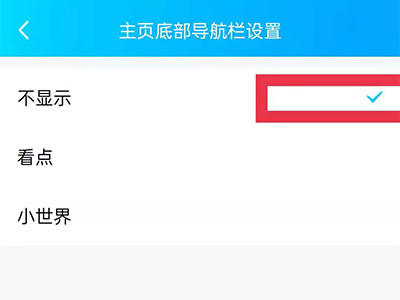 3、点击“主页底部导航栏设置”页面中的“不显示”。