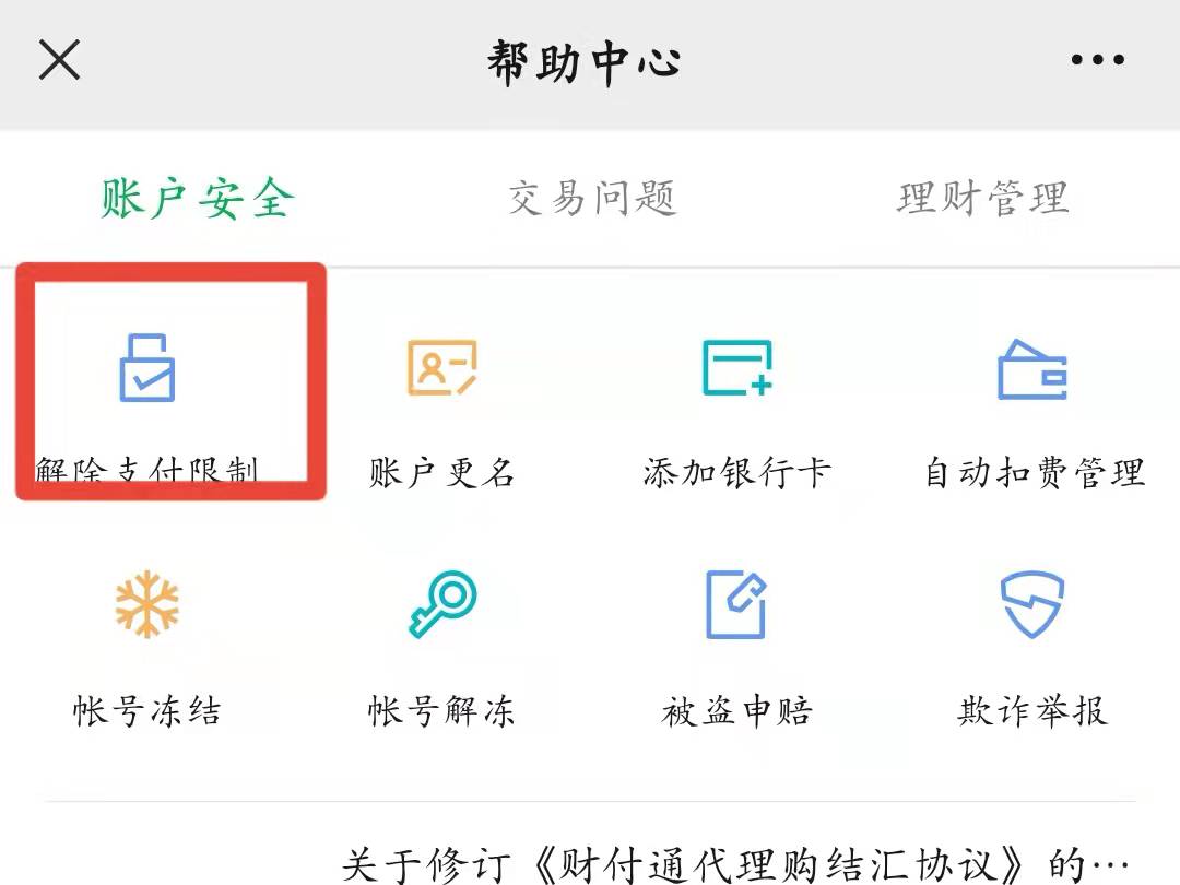 解除微信支付限制的三个具体操作步骤如下:1、打开微信APP,点击“我”-“支付”-“钱包”-“帮助中心”。2、点击左下角的“查看更多”按钮,进入帮助中心扩展界面。3、点击左上角的“解除支付限制”,按照系统要求操作即可。