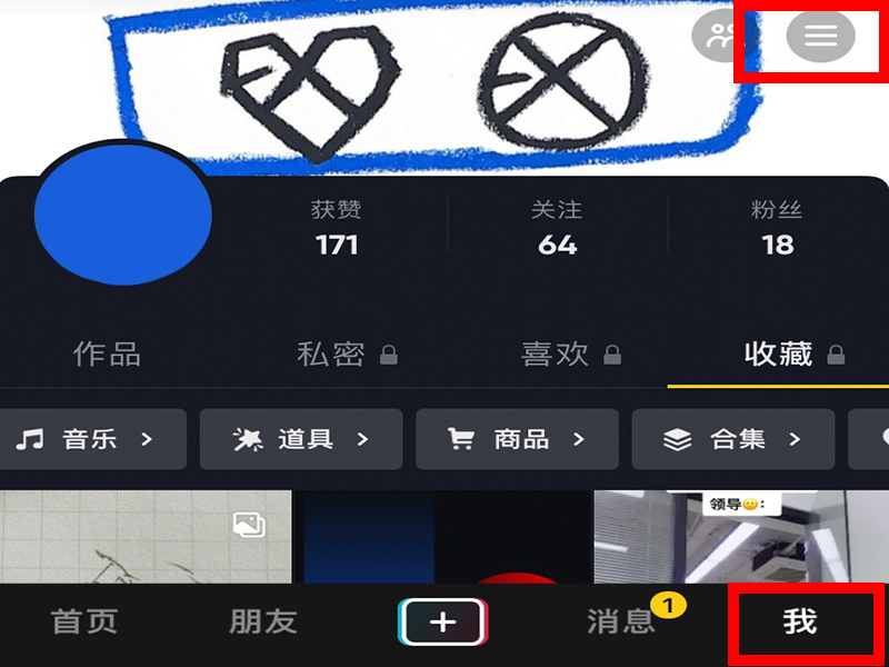 1、打开抖音app,点击进入“我”的界面,再点击右上角的三条横线。