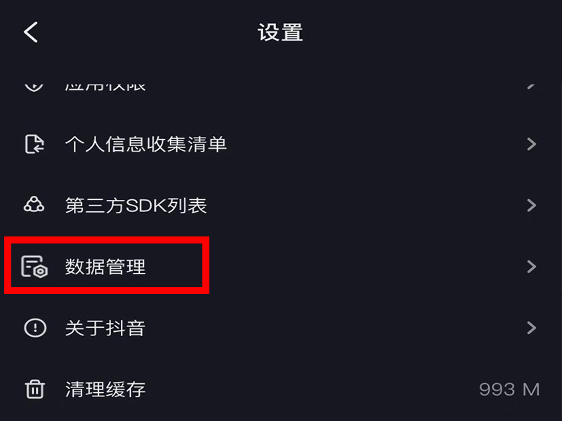 3、进入“设置”界面后,找到并点击“数据管理”。