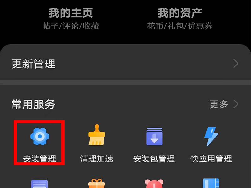 3、进入“我的”的界面后,点击“安装管理”。