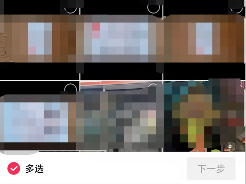 3、进入相册界面后,先点击左下方的多选,再选择需要上传的照片。