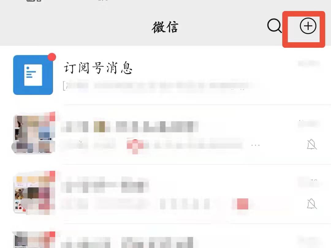 1、打开微信APP,点击微信界面右上角的“+”号。