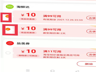 3、勾选、删除不用的优惠券即可。