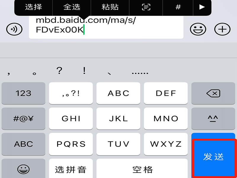 5、长按聊天框,选择“粘贴”链接,并点击“发送”。