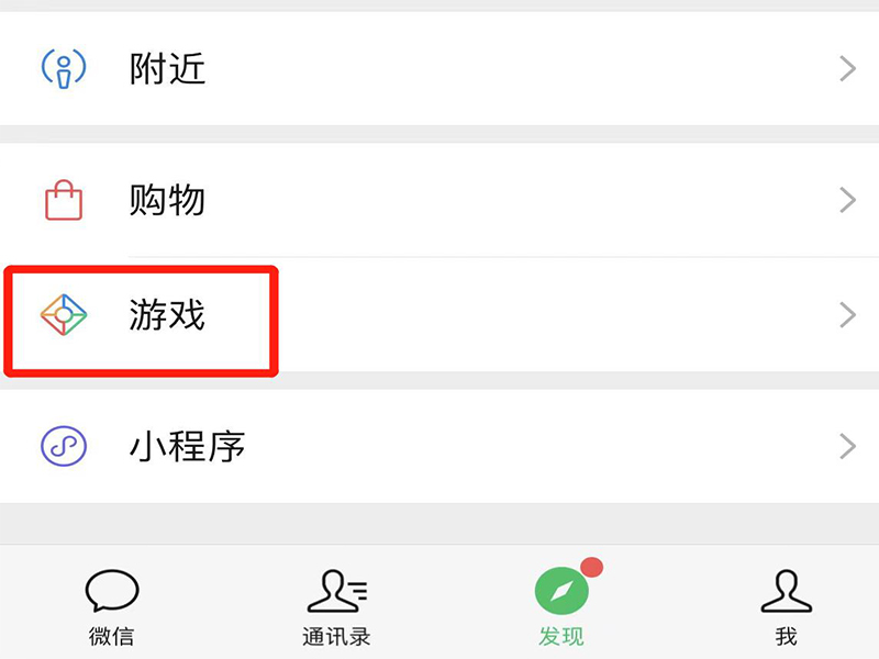 1、打开微信app,在微信发现页面中点击“游戏”选项,进入游戏页面。