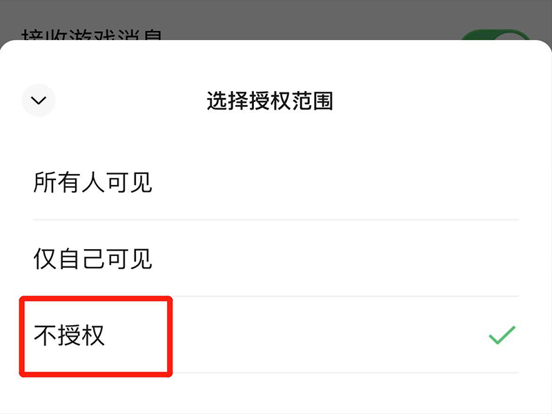 5、将游戏的授权范围选择“不授权”即可。