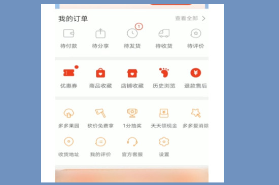 进入个人主页之后,可以看到拼多多内有很多功能可以选择,其中包括订单方面的功能、优惠券、收藏以及其他功能。在官方客服的选项后面找到“设置”,点击设置就可以打开拼多多内部的个人设置,就能选择退出。