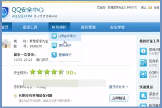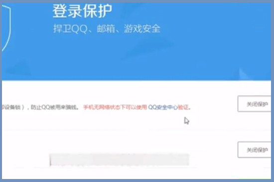 点击进入跳转页面之后就可以看到qq账号保护情况,选择右边的“关闭保护”之后,此时就会弹出会话框要求关闭qq。