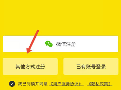 3、点击“其他方式注册”,进入界面中。