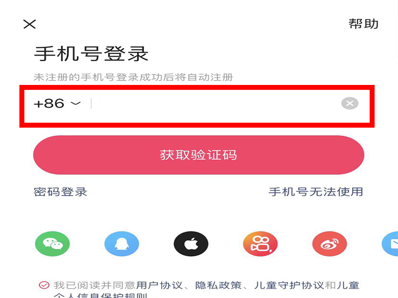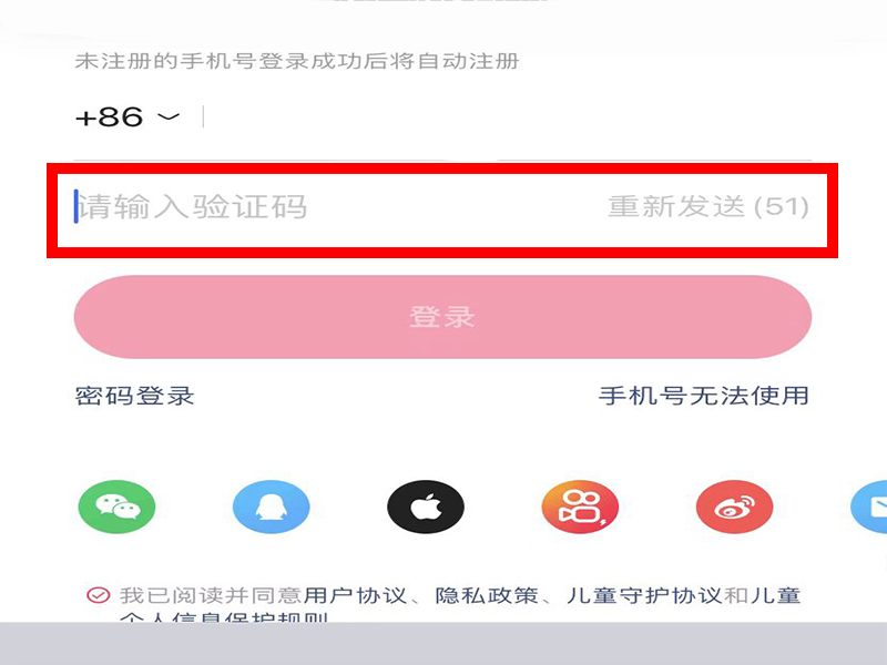 2、进入登录方式选择界面后,输入手机号,再点击“获取验证码”。