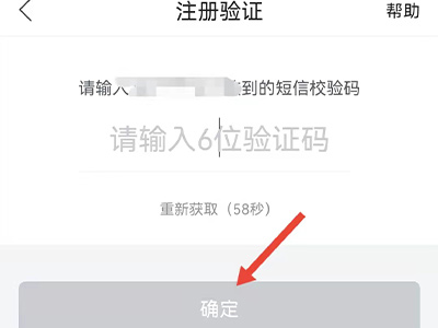4、在页面中填入验证码,点击“确定”即可完成重新注册。