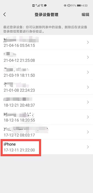 3、点击“登陆设备管理”,查看到个人微信号所有的登陆情况。如图: