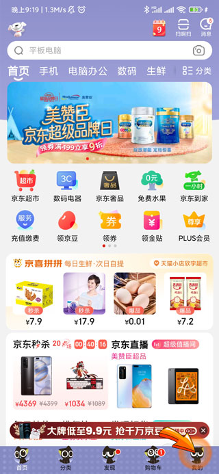 1、京东切换账号登录首先需要打开京东APP,点击页面右下角“我的”图标。