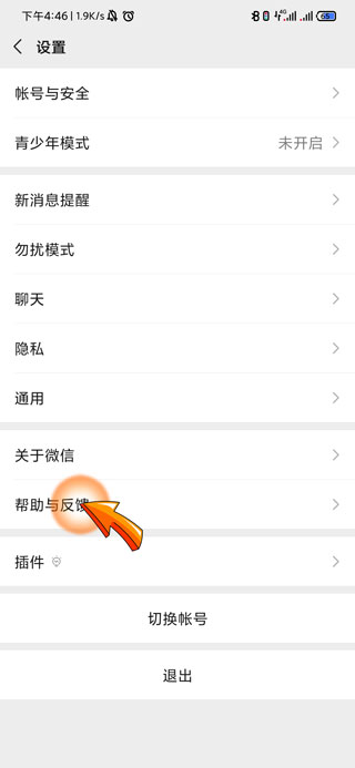 3、进入设置页面后,点击“帮助与反馈”选项。