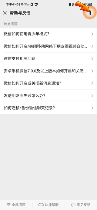 4、再点击帮助与反馈页面右上角的“扳手”图标。
