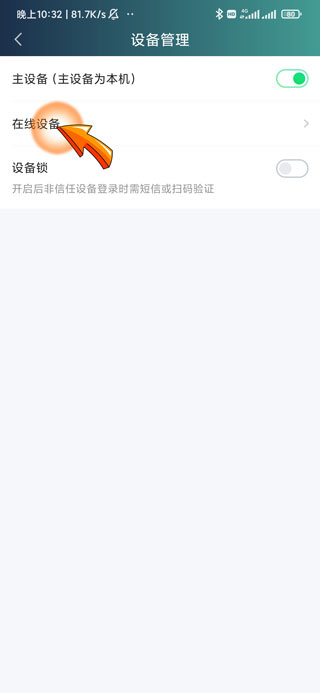 4、进入设备管理页面后,点击“在线设备”选项。