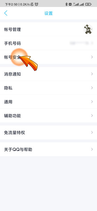 3、之后点击设置页面中的“账号安全”选项。